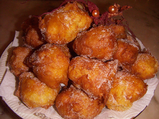 3-Fritam-se em fogo lento , deitam-se no óleo colheradas de massa (colher de sobremesa ) deitar poucos de cada vez pois crescem muito .Quando estão a fritar vão se picando com uma agulha do croché ou com um palito grande . Depois de fritos passam-se por açúcar ou por uma mistura de canela com açúcar