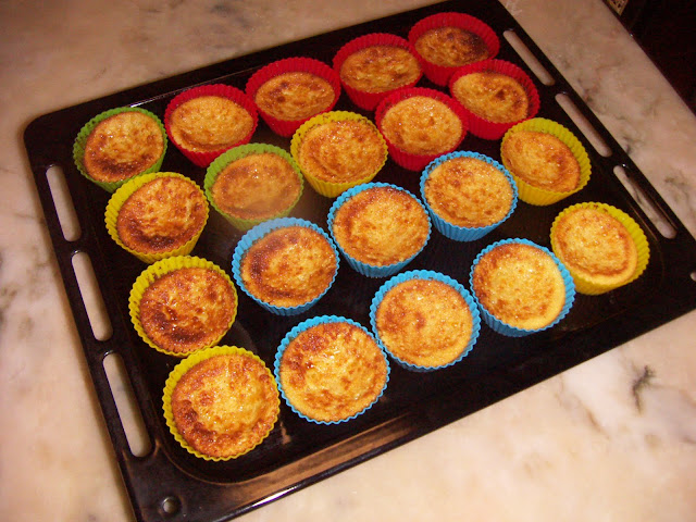 Queijadinhas mandarim dentro das formas a sair do forno . Delicia !